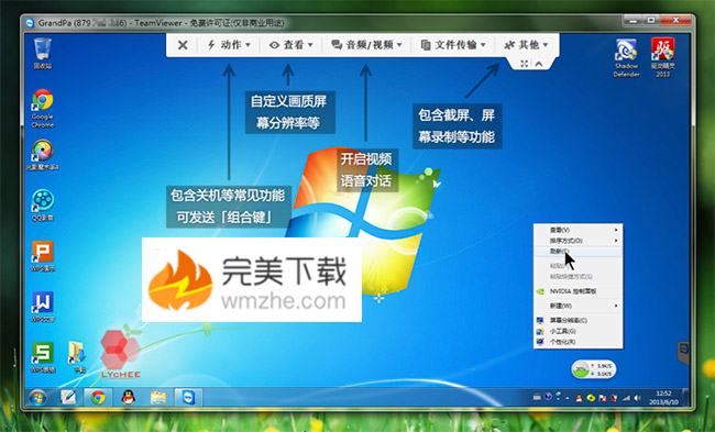 6、新版TeamViewer 8中,新增功能:收听和观看远程计算机上的动态,包括系统声音、音乐或视频。