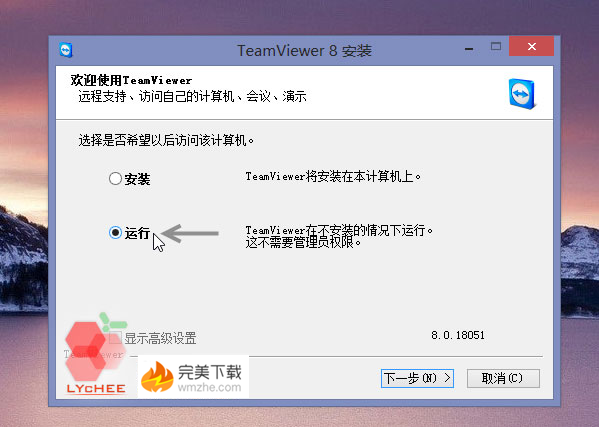 这里最值得称赞的是,TeamViewer可在不安装的情况下运行,只需在安装界面选择“运行”即可,稍等片刻也会出现主界面,关闭后不会留下任何痕迹。此模式唯一的限制就是不能登陆TeamViewer帐号,只能通过电脑ID进行远程控制或会议。不过已可作应急之用,绰绰有余。