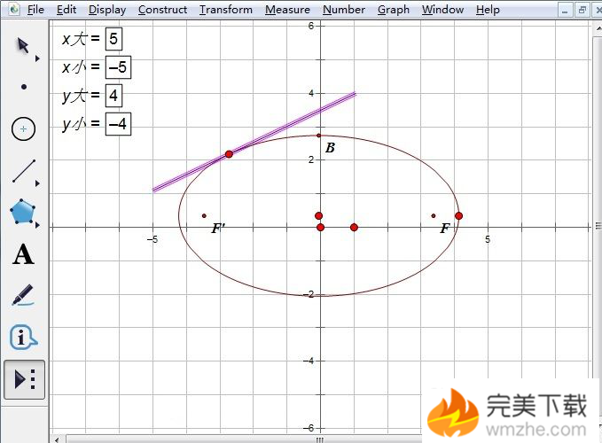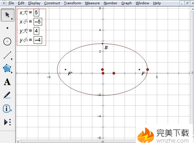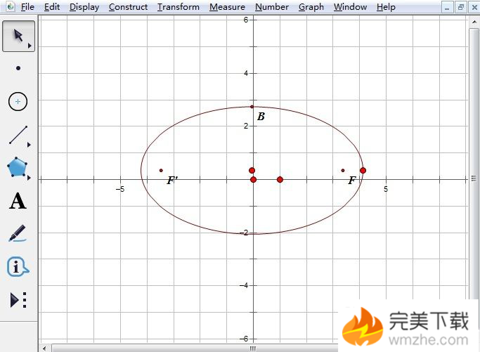 2.单击左边侧边栏“自定义工具”按钮,在弹出的工具菜单选择“圆锥曲线A”——椭圆,在画布上面单击确定椭圆中心并拖动鼠标确定椭圆的位置,如下图所示。