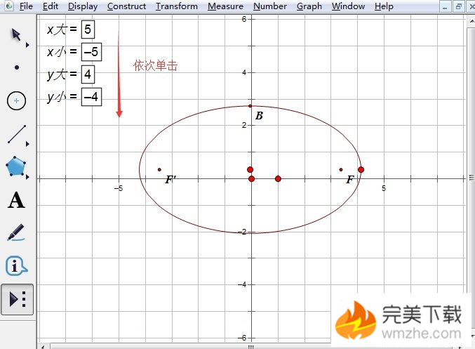2、选择以上工具后,用鼠标依次单击参数x轴最大值、x轴最小值,y轴最大值、y轴最小值,注意不能搞错顺序。