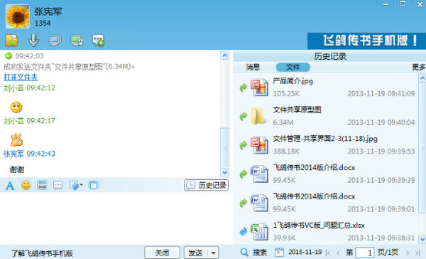 飞鸽传书是面向企业、学校、家庭的局域网即时通讯软件,实现局域网内部文字、文件、文件夹的高速传递,软件具有即装即用、传输快捷的特点,深受广大用户的喜爱。目前已经覆盖Windows、Linux、Mac以及iPhone、Android、Symbian、Windows Mobile、Meego等平台,实现各PC、手机、平板、智能电视平台基于网络的互联互通。