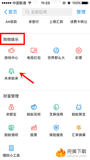 我们可以在购物娱乐的分类目录下,找到我们需要的未来蚁来,点击之后进去体验刷脸看运势吧。