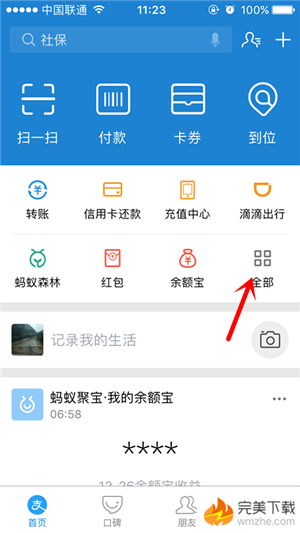 进入支付宝钱包,像刷脸看运势的未来蚁来,属于受众人数比较少,我们需要先找到这个应用,单击“全部应用”选项。