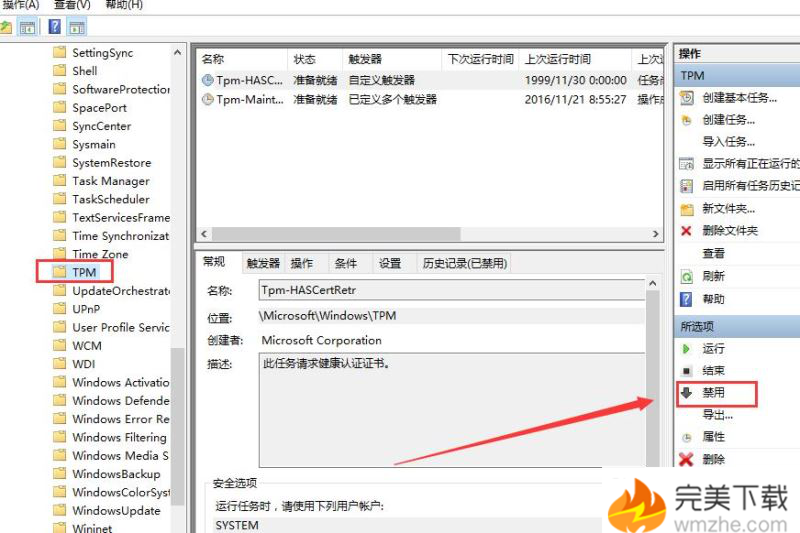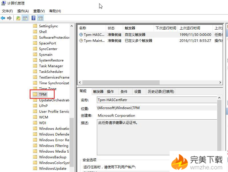 2、在界面中,依次展开:任务计划程序\\任务计划程序库\\microsoft\\windows\\tpm,如图所示: