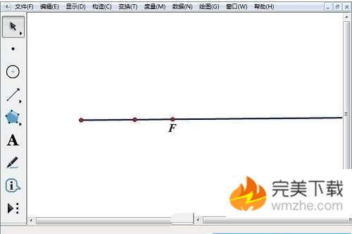 1、利用线段工具作出一条射线,利用点工具在射线上取一点F。
