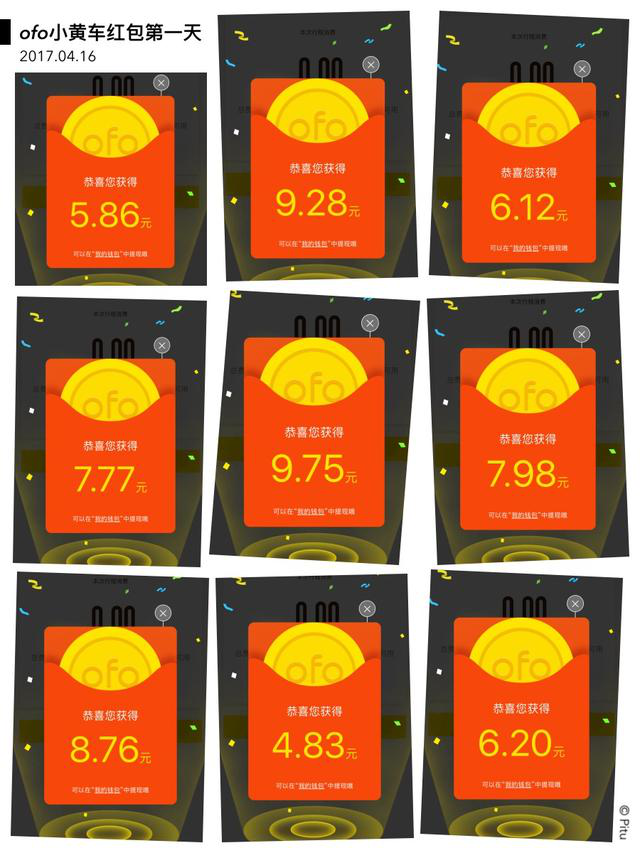 相比摩拜最低1 元、最高100元的红包范围,ofo的红包最高可达5000元!