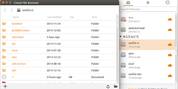 在一些场合下,你希望在不同步文件的情况下直接编辑服务器上文件。Seafile 客户端为此提供了“云端文件浏览器”,双击尚未同步到本地的资料库,即可打开云端文件浏览器,对云端的文件进行操作。