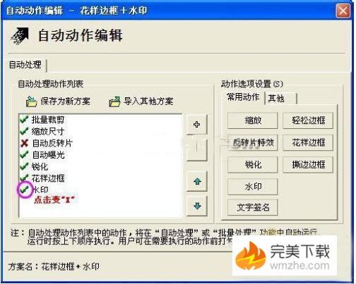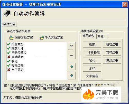 第五个是缺省方案“摄影作品发表前处理”,会在照片上留下该照片的EXIF信息,如光圈、速度啊什么的。