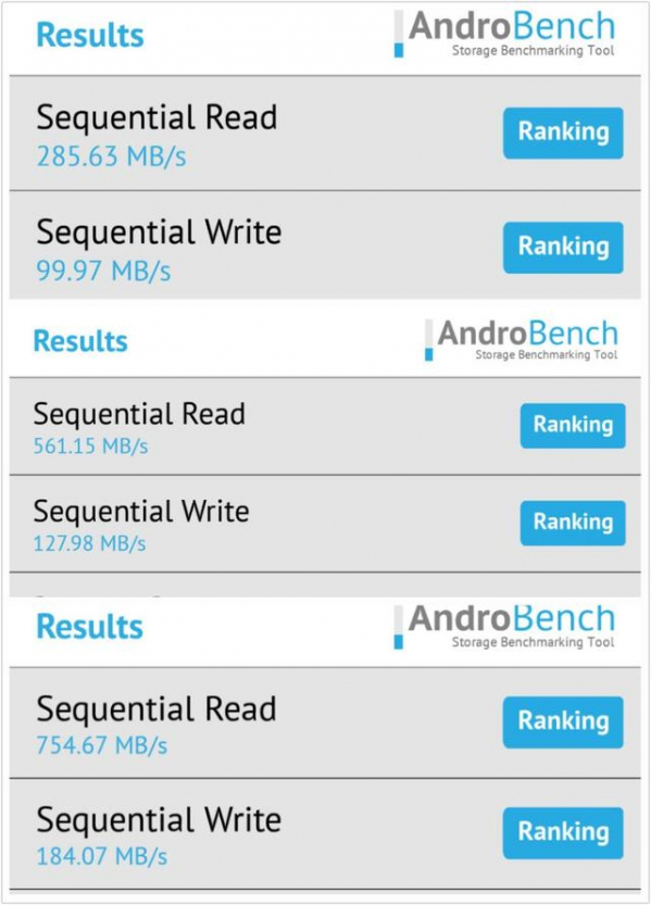 真是祸不单行啊,这疏油层时间还没有过去多久,紧接着华为P10就在今天又被曝出所谓的“闪存门”。这到底是怎么回事呢?原来啊,有细心地网友发现同为华为P10,经过测试却发现测试得出的读写速度却有天壤之别,读写速度280多MB/s、560多MB/S以及750多MB/s,有网友猜测这可能是由于华为P10 将EMMC 5.1/UFS2.0/UFS2.1三种闪存混着用导致的。