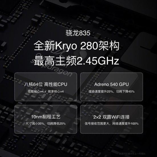 配置方面,小米6搭载骁龙835处理器,它是国内首发835的机型。835采用了10nm制程,全新Kryo 280架构,主频高达2.45GHz,综合跑分成绩高达184292,性能出众。