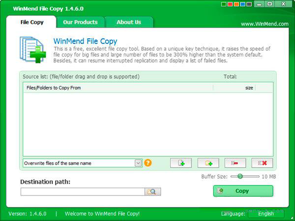 在大量测试的基础上,并不断挖掘操作系统的潜力,WinMend File Copy形成了独特的关键技术,弥补了系统默认复制功能的不足,复制速度比系统默认的要提高3倍。它可以恢复中断的复制和显示因被其他应用程序使用而复制失败的文件列表。它能帮助你极快地提高备份系统的速度。