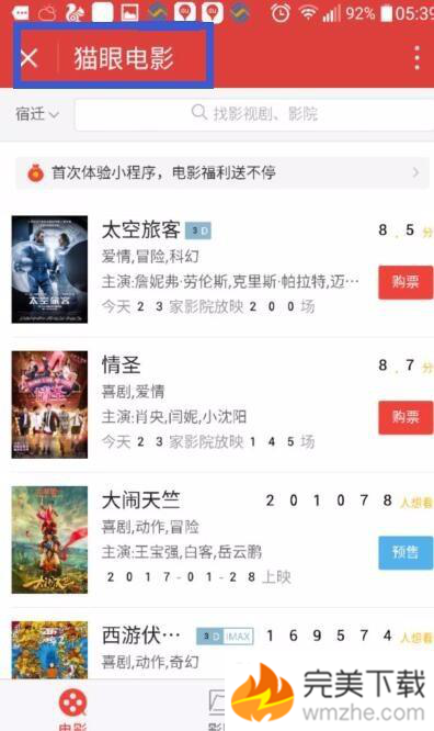 5、点击左上角的那个“猫眼电影”的左边那个“x”。