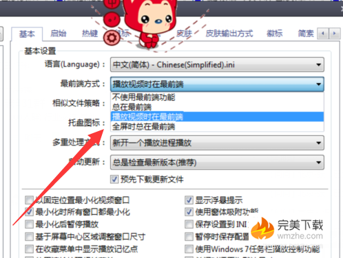 4、小编选择播放视频时在最前端,四个选项设置倒是挺不错。