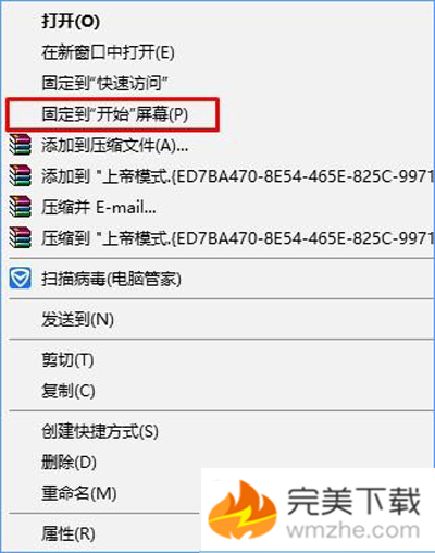 2、在【上帝模式】上单击右键,选择【固定到“开始”屏幕】即可。
