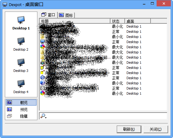 Portable Dexpot是一款超强的虚拟桌面软件,让你可以拥有多个虚拟桌面,这样你就再也不会觉得屏幕上的位置不够用了。不同的桌面可以有不同的背景图像和颜色,点击系统上的托盘图标可以很方面地在各个桌面之间来回切换,虚拟桌面数目最多可以 20 个。