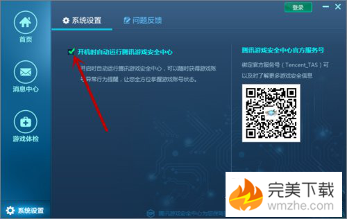 3、在开机自动启动腾讯游戏中心前打钩 ;