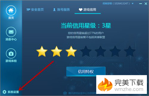 2、点击腾讯游戏安全中心左下角的“系统设置”;