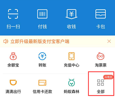 1、支付宝外汇汇率的算法很简单,我们先找到外汇汇率计算工具,点击首页的【全部】选项,进入全部应用;