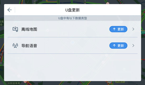 3、这时车机将自动识别您U盘中的数据,您可根据需要选择需要更新的数据。