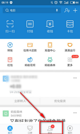 1、打开支付宝,点击朋友,
