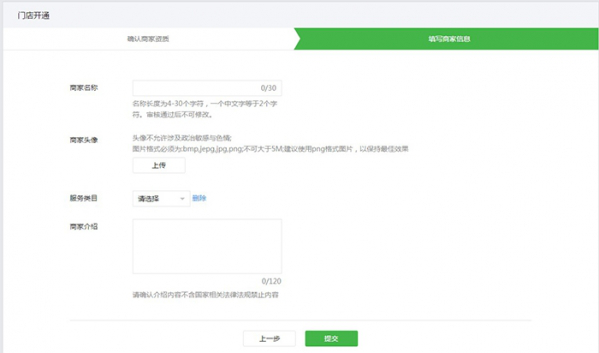 服务类目:选择商家经营的服务类目,并上传对应的资质。