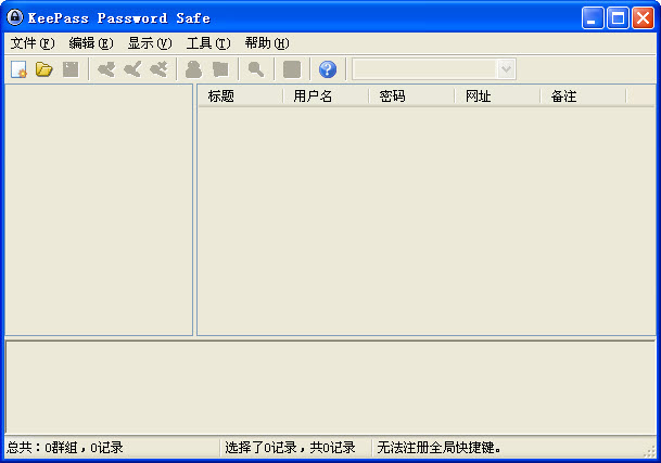 进入软件主页面,点击新建,会新建一个扩展名为kdbx的文件,这就是我们的密码数据库。我们的所有密码都会加密然后封锁在这样一个数据库里,除非使用你的主密码和密钥文件,否则谁也打不开。由此我们可以看出,KeePass是把密码存储在本地的,但这样在跨平台方面会有问题,不过有解决办法,见下文。紧接着,会看到这样一个界面: