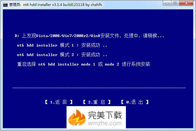 如果没有新安装系统,每次启动系统都会出现NT6 HDD Installer mode 1和mode 2的选项,想要卸载的话也很简单,重新运行程序,选择“2”即可成功删除。