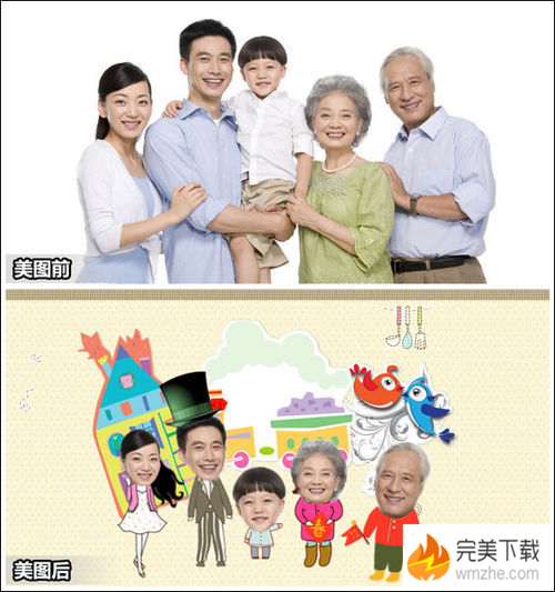 想必大家对美图秀秀这款软件都很熟悉了吧,节假日一家人都会团聚在一起,何不拍一张温馨的全家福呢?利用美图秀秀简单几步就可以制作出喜气洋洋全家福,今天小编就教大家如何利用美图秀秀制作温馨卡通全家福,感兴趣的朋友可以过来学习一下。