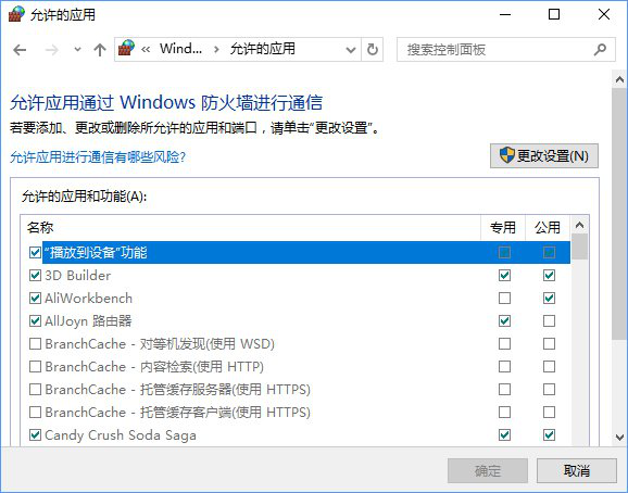 依次打开“控制面板”-“Windows 防火墙”-“允许程序活功能通过Windows防火墙”,然后把steam软件在公用网络和家庭网络上都划上对钩。