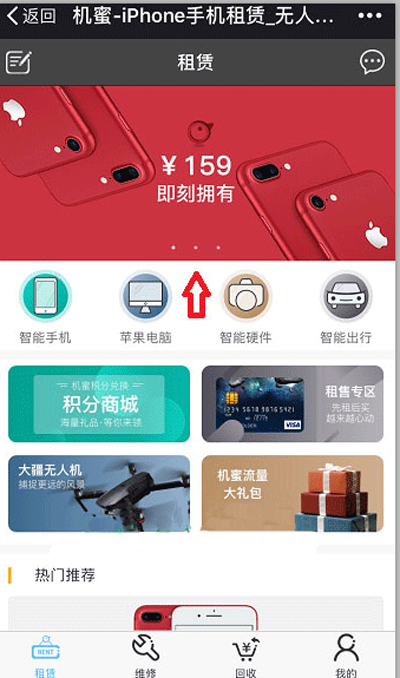 1、机蜜租机有两种方法,一个是通过机蜜微信公众号(ID:jimistore),一个是通过机蜜app。如果是机蜜app的话,直接进入app就好,如果是微信公众号的话,进入微信公众号之后点击【机蜜服务】找到【手机租赁】。