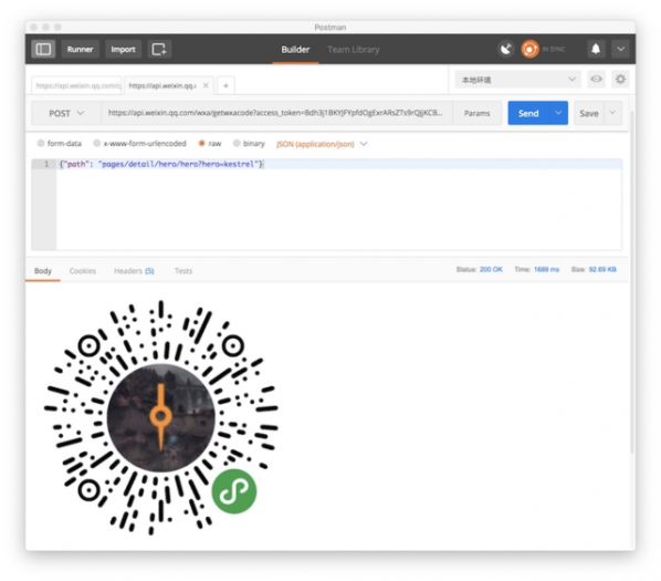 微信提供了两个POST获取小程序二维码的接口。你可以根据你的业务需求,自由选择任一接口,获取相应的小程序二维码(参数中的ACCESS_TOKEN部分填入上一步我们获取到的AccessToken)。