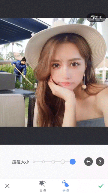 这时,只需要活用美图秀秀的祛斑祛痘功能轻松把他们“消灭”。同样地,这个功能你能够在“人像美容”模块里找到,和“增高”就在同一行。