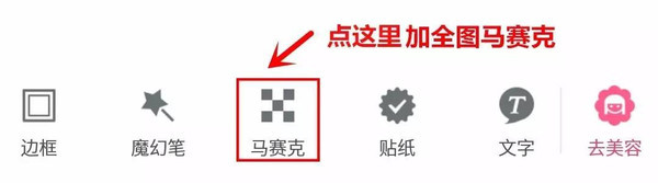 在“美化图片”模块里导入照片,在底栏找到“文字”,它就在“马赛克”后两个按钮。