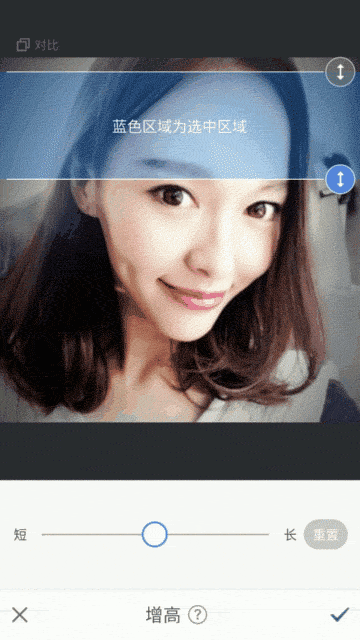 增高功能实际上是一个局部纵向拉伸的功能,利用这个功能可以调整照片的局部比例。