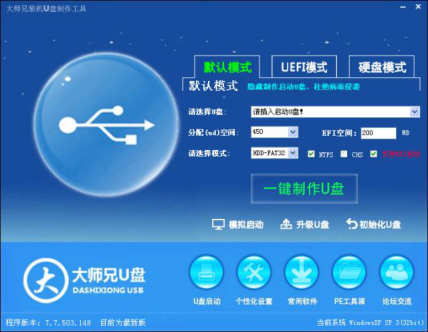 大师兄U盘启动制作工具是一款专业的制作U盘启动盘的工具,使用该工具,轻轻松松帮助你实现U盘启动,而且操作简单,使用方便,是小白用户维护新旧电脑系统的不错选择。