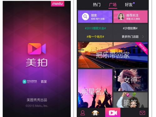 美拍是美图秀秀出品的最潮短视频社区。通过各种MV特效对普通视频进行包装,呈现出不同的“大片”效果。凭借高清唯美的画质,迅速成为倍受追捧的短视频应用。号称“10秒也能拍大片”。