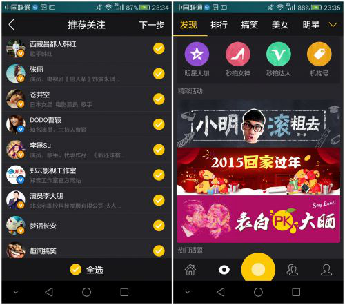 众多明星大咖都在使用,用户可以请关注他们,随时随地与明星互动,而发现一栏中,我们却可以在这里寻找到更多新奇好玩的内容,这里的内容都是精挑细选之后为大家推荐出来的,用户还可以根据分类来进行更加精准的搜索,比如秒拍女神、创意达人、体育运动等等将近十种不同的分类。另外我们还可以在这里时刻请关注李宇春、邓紫棋等一线明星的最新动向。