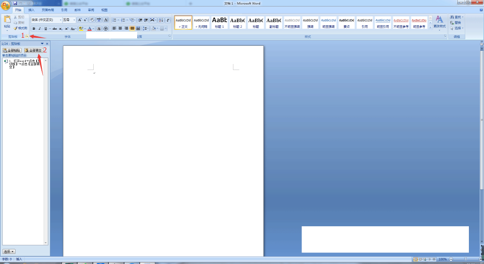1、打开word→点击【剪切板】→点击【全部清空】