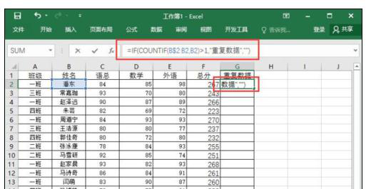 Excel2016中利用函数公式检查表格重复数据的教程介绍