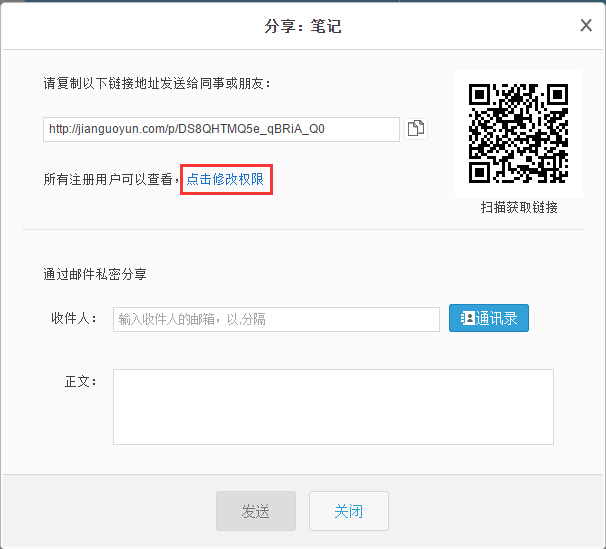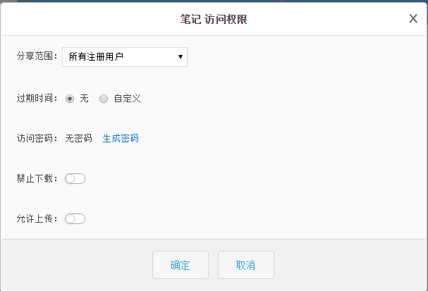 在分享链接的页面上选择“点击修改权限”,可以针对分享的文件设置分享范围,过期时间,访问密码及上传下载的权限。