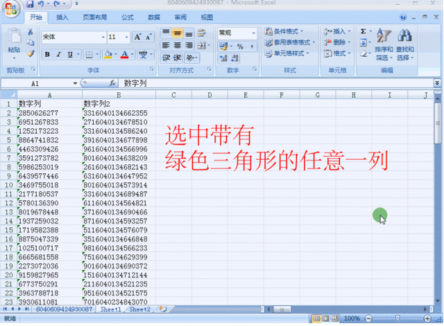 3、批量去除数字上方的“绿色小三角”