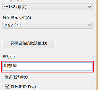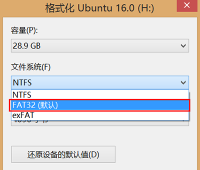 可以根据自己的需要选择格式化文件系统,这里选择“FAT32”;