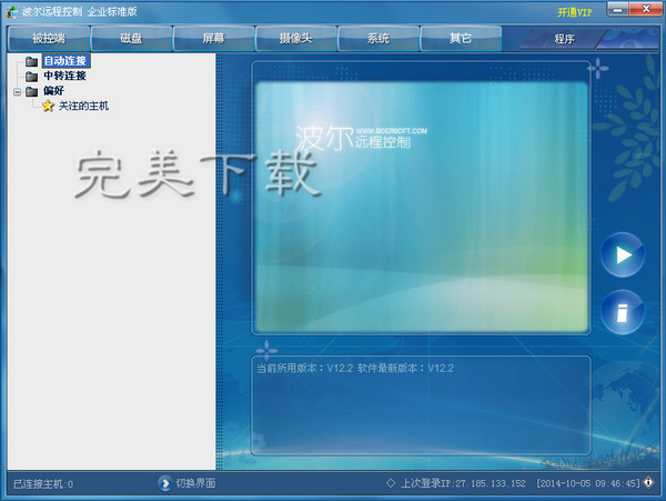 波尔远程控制能够通过Internet网、局域网进行计算机的远程监控管理,可用于公司管理层对员工计算机的监视,有了此程序不论是员工在工作、聊天、上网、玩游戏都能够看的一清二楚,并且具有远程数据传输功能,方便的进行文件上传、下载、运行、删除等操作。