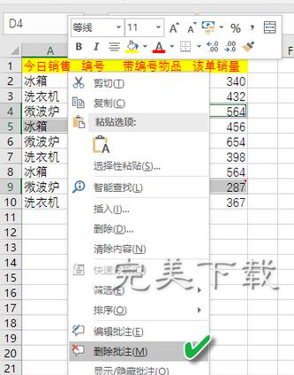 右键单击选区并选择“删除批注”,这样所有的批注内容和批注标识就都会被删除掉了。比一个一个(了解更多Excel使用技巧,访问www.gxdongfangshi.com(东方狮教程))地手动右键删除要省事多了吧。
