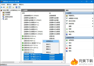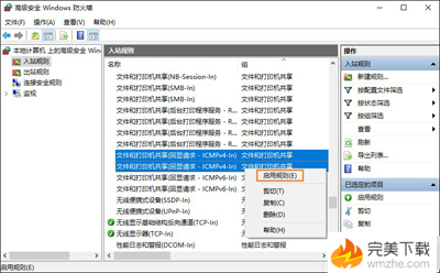 2、搜索高级安全Windows防火墙 -》入站规则-》文件和打印共享(回显请求-ICMPv4-In)右键启用规则-》寻找带(了解更多win10相关资讯,访问www.gxdongfangshi.com(东方狮教程))远程桌面字样的规则将其全部启用;