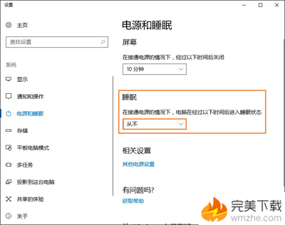 3、搜索 电源和睡眠,睡眠-》从不,电脑睡眠会使远程桌面断开。