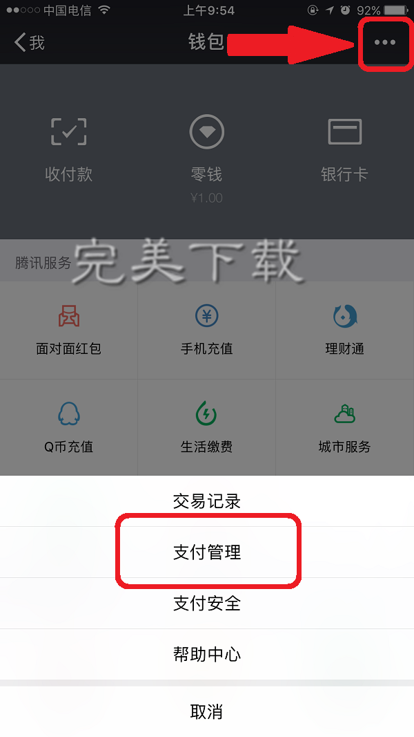 1、点击右上角的【··】标志,点击打开【支付管理】;