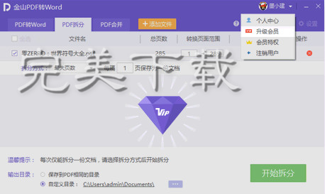 金山PDF转Word功能是部分收费的,总页数5页内的PDF与拆分免费,总页数10页内的PDF合并免费,开通白银会员即可不受限使用。
