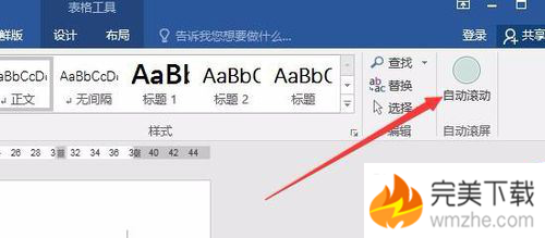 回到word2016的主界面,可以在工具栏上看到一个“自动滚动“的按钮