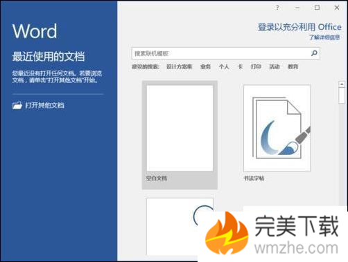 1、在打开的Word程序界面,点击“空白文档”选项,新建一个空白的Word文档。如图所示